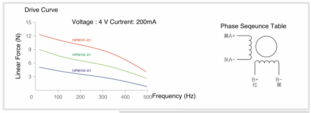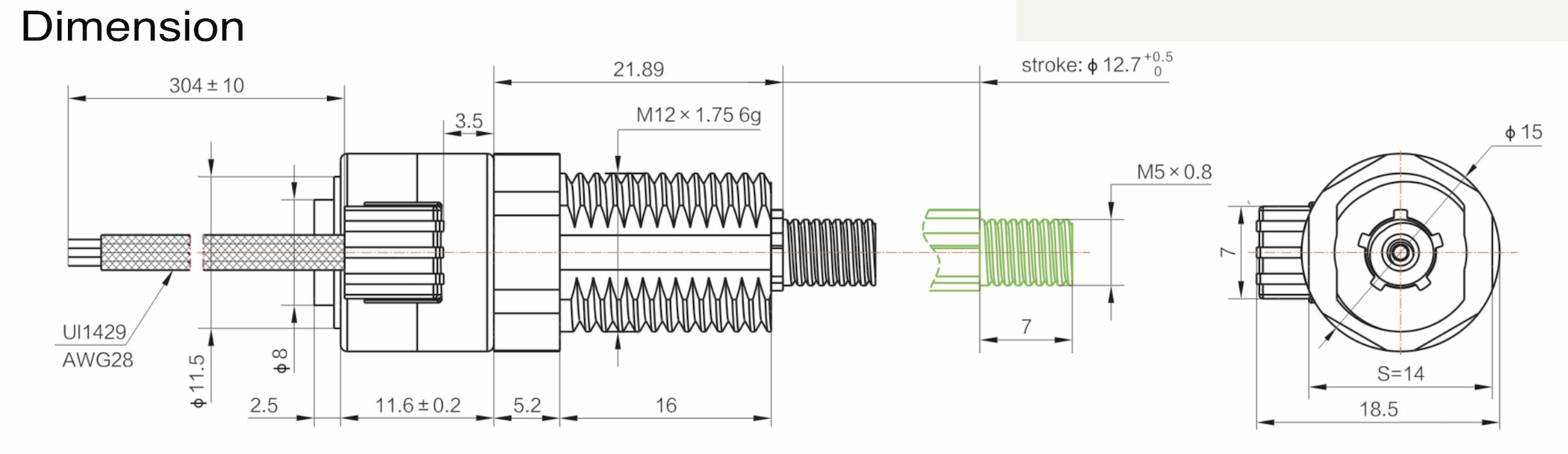 Type ohne Encoder | Durchmesser mm | Auflösung / Schritt mm | Hub mm | Linear Kraft N | Strom A | Widerstand Ohm | Schrittwinkel ° |